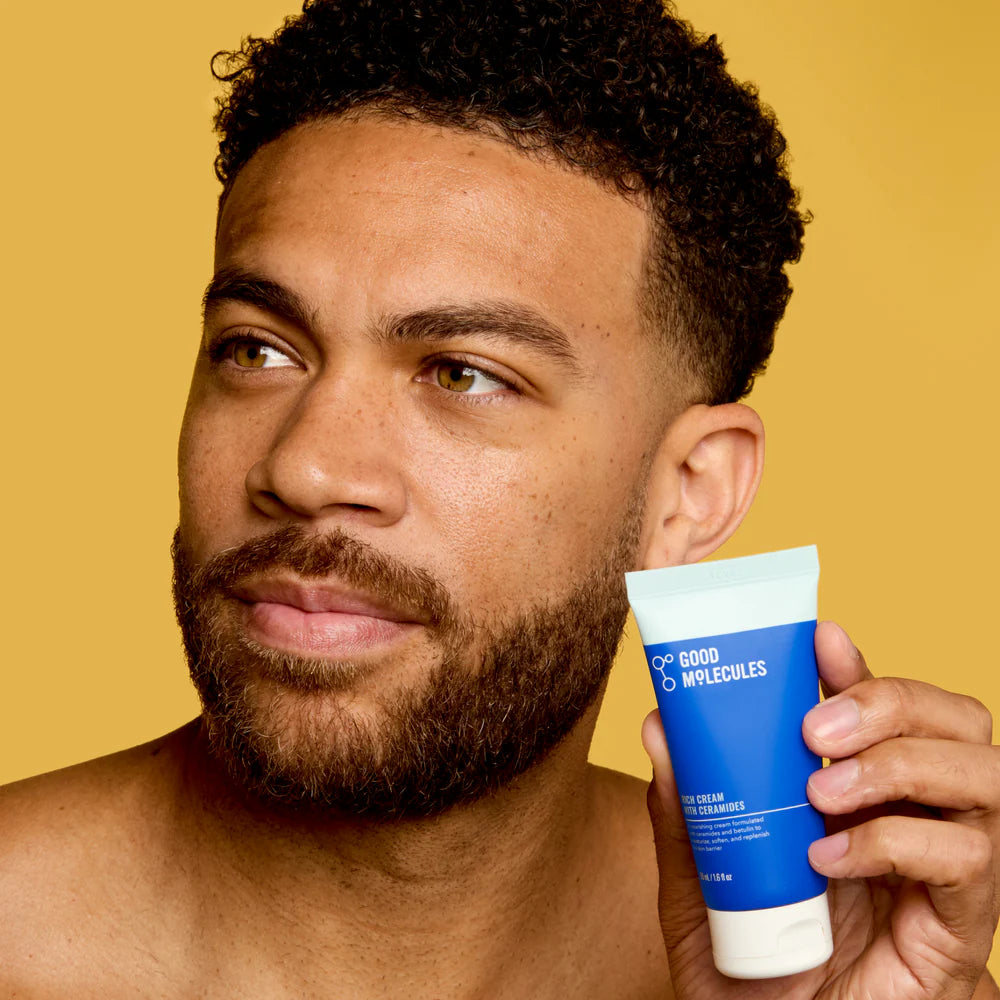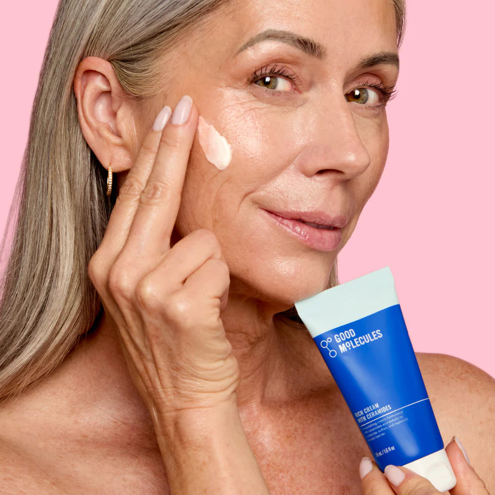The Good Molecules Rich Cream with Ceramides nourishes and deeply hydrates while also supporting the integrity of the skin barrier. The rich, luxurious texture is achieved with an elegant combination of vegan lanolin oil replacement and plant-based emollients to calm, soften, and replenish sensitive, compromised, or dry skin.